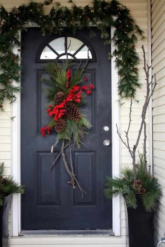 - DIY Natural Elements: Create a gorgeous doorway swag using foraged greens, dried oranges, and cinnamon sticks. It’s an upcycled Christmas ornament idea on a larger scale that fills the air with a natural, festive scent.
