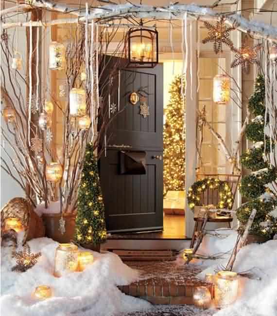 - Create Porch Drama: Focus on your door with a stunning wreath, flanking decorations like lighted topiaries, and a cozy seating area.