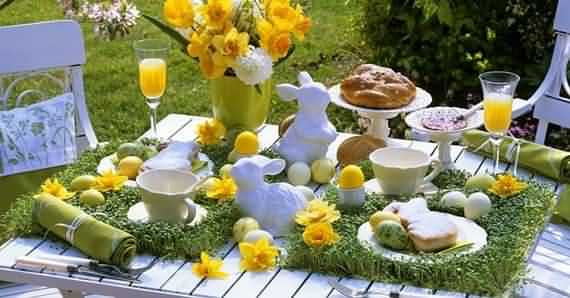 Try to place bunny candles and figurines next to the outside table decor for a playful look. Bring a brightly-colored ceramic vase is the perfect vessel for amazing fresh springtime bouquet. Set one on the side table for a pop of color and fragrance next to the chairs. You can also create a stylish tablescape to set the stage for a beautiful meal. Start with a tablecloth in amazing vibrant color, such as light yellow, orange, red or green and toxic green are currently fashionable. Somehow they seem appetizing, too. Next, add coordinating napkins decorated with some Easter napkin decoration ideas and don’t forget to bring the Easter dinnerware too. A fine set of silver cutlery is also necessary.