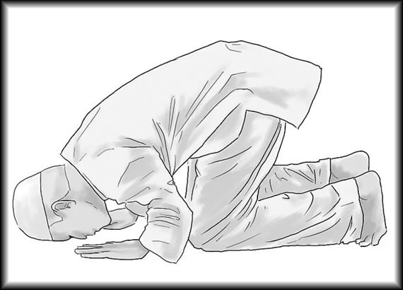 Sujud: Worshippers kneel with only palms, knees, toes, forehead, and nose touching the ground. “Glory be to God, the highest” is repeated three times.